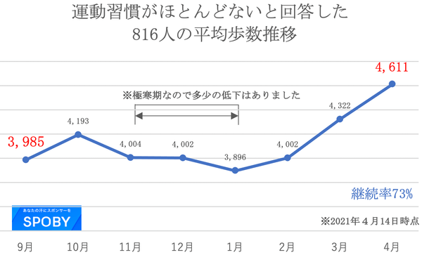 2018年にリリースしたウォーキングアプリ『SPOBY』は、ユーザーがスマートフォンを持って歩くとスポンサー企業から特典が受けとれるゲーム感覚のウォーキングアプリです。好評を得て、口コミだけで12万ダウンロードを突破した『SPOBY』は、シンプルな操作とユーザーメリットにより運動意欲を持続させ、若者からシニア層まで評価いただき、半年間で全アクティブユーザー1日あたり1,000歩の運動量の底上げを実現しました。