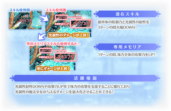 ・魔法少女やメモリアのスキル内容・効果は事前告知の上、変更する場合があります。