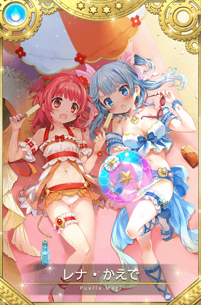 「夏のベストタイム」「遊びだって真剣勝負!」は5月29日16:00に開催予定の『期間限定 鹿目まどか 水着ver. ピックアップガチャ』より登場いたします。