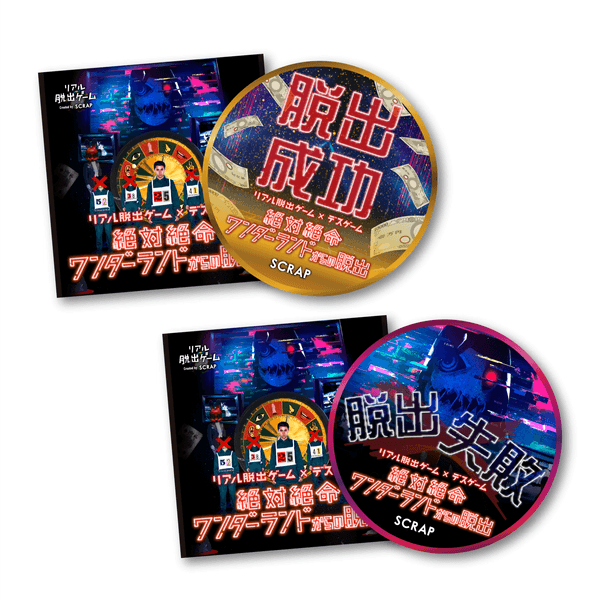 またリアル脱出ゲームのオリジナルグッズに欠かせない「脱出成功/失敗ステッカー」も、もちろんご用意しています。