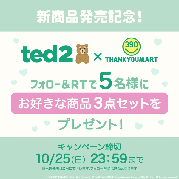 【好きな商品が当たる♡】『TED2×サンキューマート』コラボグッズ新発売キャンペーン中!