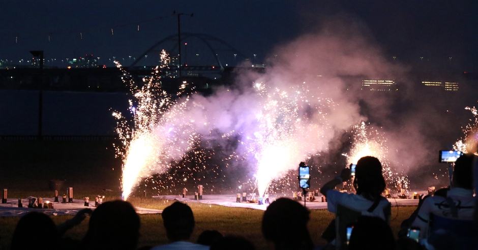 プロ花火師・葛城煙火による、家庭用の噴き出し花火や打ち上げ花火を組み合わせたオリジナル演出。15分ほどの小規模ショーながら、色彩やリズムにこだわった幻想的な光の世界が広がります。 玩具花火のナイアガラの滝やスターマインも登場予定。お子さま連れでも安心してご覧いただける、“ちょうどいい距離感”の花火体験をお届けします。