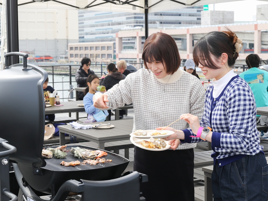 玩具花火大会の前に、家族や友人とゆったり海鮮BBQはいかがですか?水辺の開放感あふれるロケーションで、新鮮な魚介を豪快に焼いて楽しむ「海鮮浜焼きBBQ」が大人気の、都会にいながらリゾート気分を味わえる中之島GATEサウスピア内のBBQスポットです。夕暮れ時にはライトアップされた水辺を眺めながら、グリルの香ばしい匂いとともに、美味しい海の幸を堪能。BBQを楽しんだあとは、そのまま幻想的な玩具花火大会を観賞できる特別な一日をお過ごしいただけます。