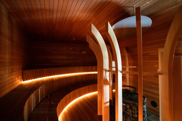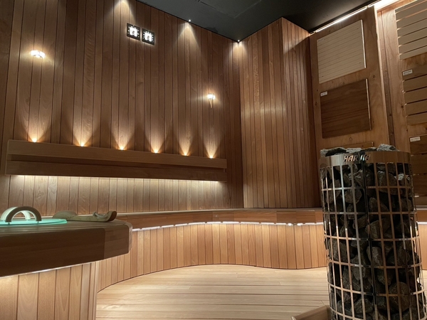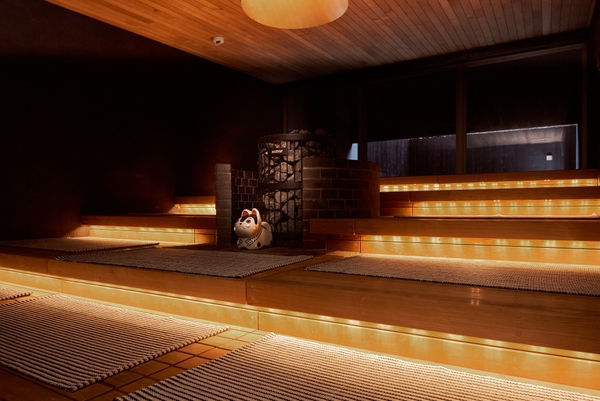 岡山県玉野市の瀬戸内温泉たまの湯では今年二月にサウナ室をリニューアル。サーモリーのサーモアスペンをベンチや床、壁、天井へふんだんに使用したサウナ室内は水や波をイメージしたデザインで、カリッティの照明がその雰囲気を仕上げています。ベンチ下部からムードたっぷりに室内を彩るLED照明の他、15分おきにオートロウリュが作動するヒーター直上にはガラスファイバー照明を設置。ロウリュの蒸気を光で演出します。