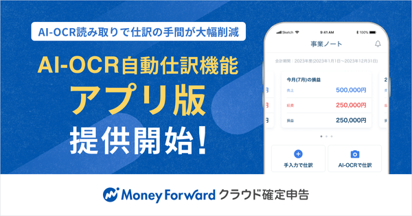 株式会社マネーフォワードは、確定申告ソフト『マネーフォワード クラウド確定申告』のスマートフォンアプリにおいて、レシートや領収書をAI-OCRで読み取り、仕訳を自動で作成できる『AI-OCR自動仕訳機能(アプリ版)』の提供を開始しました。