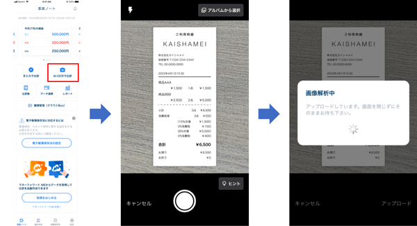 レシートや領収書をスマートフォンで撮影し、仕訳候補まで自動で作成