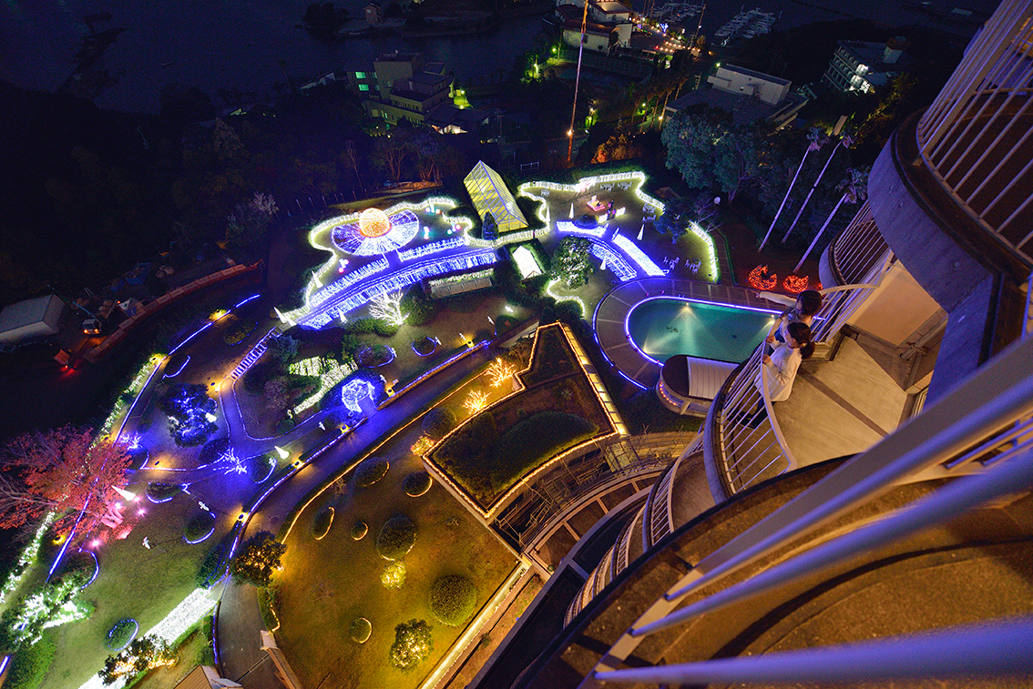 和歌山最大級のプライベートイルミネーション「イルミナスオーシャン」を望むレストランにて、『和食会席』又は『フレンチ会席』をお召し上がりいただきます。(席によってはイルミネーションが見えない場所もございますので予めご了承ください)