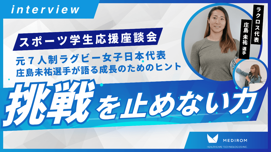 「健康を、もっと、あたらしく」をコンセプトにヘルスケア事業を多角的に展開するメディロムグループは、2025年4月21日(月)に元7人制ラグビー日本代表で現在ラクロス選手の庄島未祐選手をゲストに迎え、「挑戦を止めない力」をテーマに就活応援座談会を実施いたしました。