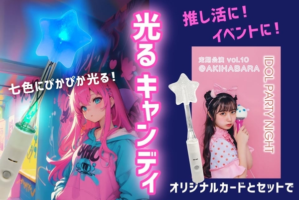 七色に光る星形キャンディがオリジナルカードとセットになって登場。キュートなデザインで、イベントや配布ノベルティに最適です。