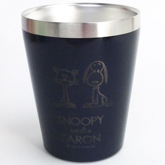 違うデザインもご紹介しちゃいます。ブルーのタンブラーにティータイムのスヌーピーのデザインです。お馴染みの人気のデザインですよね♪