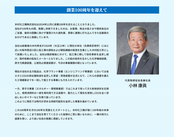 <木村化工機株式会社100周年記念サイト https://kcpc100.net の内容>