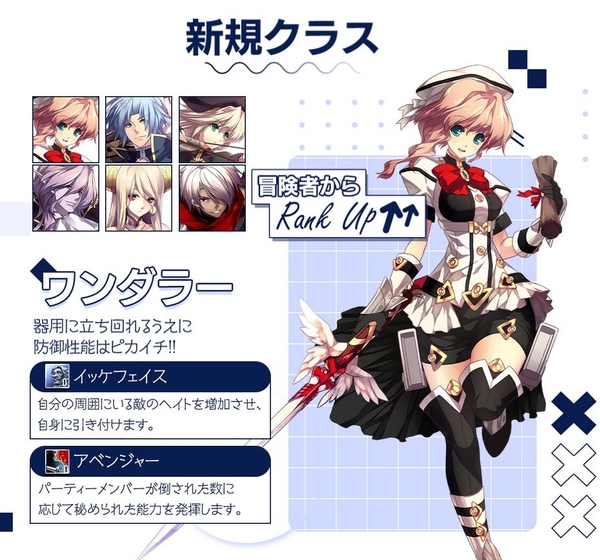 基本クラスの「冒険者」「ソードマン」「アーチャー」「マジシャン」「ヒーラー」「アサシン」の上位クラスとなる、「ワンダラー」「ブレイバー」「スカウター」「マギウス」「プリースト」「オプスキュリテ」を実装しました。