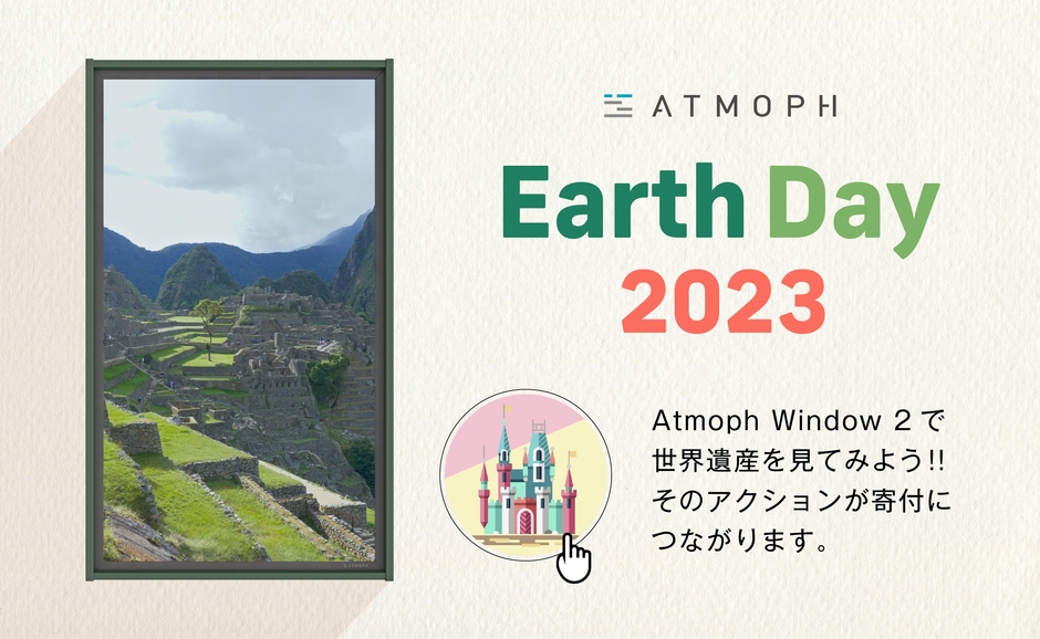 Atmophは、地球について学ぶことでその土地を身近に感じ、「この風景をいつまでも残していきたい」と一人一人に感じてもらうことが、環境問題への第一歩だと考えます。この度、Atmoph Window 2のプレイリスト機能を使い、ウルル、マチュピチュや屋久島の白谷雲水峡をはじめとする156種類の世界遺産に触れる方法を提案、さらにアースデイを記念してその利用者数に応じた金額を環境保全団体に寄付する企画を開始します。