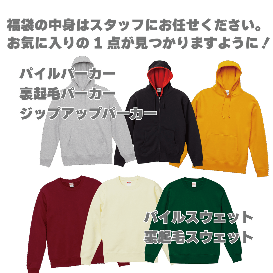 【2025元旦初売り福袋】パーカー、スウェット、Tシャツなど無地トップス5点セット!12,000円相当が特別価格5,980円