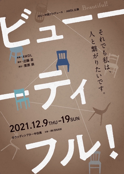 ボビー中西プロデュース AWDLによる『ビューーーティフル!』が2021年12月9日 (木) ~2021年12月19日 (日)にウッディシアター中目黒(東京都目黒区)にて上演されます。チケットはカンフェティ(運営:ロングランプランニング株式会社、東京都新宿区、代表取締役:榑松 ⼤剛)にて11⽉6⽇(土)より発売開始です。