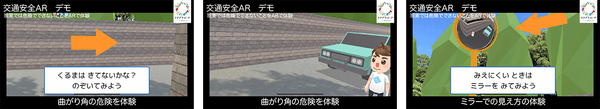 AR技術を利用することで、実際の空間に3Dの道路や走行する車などを出現させることができるため、座学やビデオだけではわかりづらかった交通事故の危険性を実際に体験いただけます。子供に体験させたくない「危ない!」をARで体験してもらうことによって、わかりやすく学んでもらうことが可能です。
