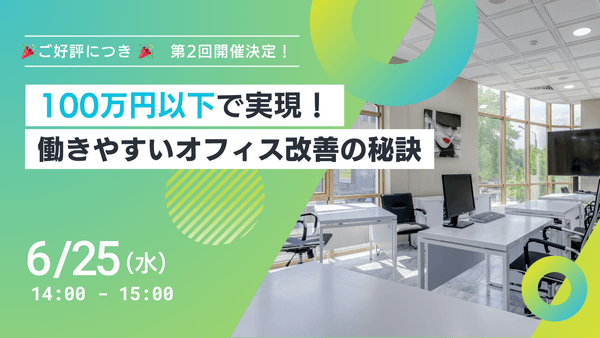 株式会社アルファーテクノ(本社:東京都、代表取締役:髙野 賢史)は、前回ご好評をいただいた「100万円以下で実現!働きやすいオフィス改善の秘訣」セミナーを、第2回として開催する運びとなりました。