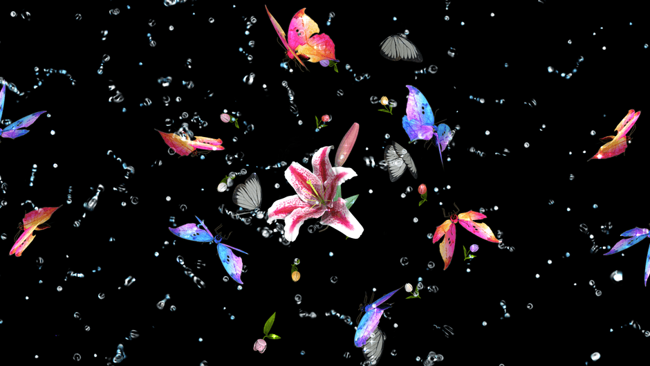 映像は、春夏秋冬の4種類。“小川のせせらぎ” “小鳥たちのさえずり” “ほたるの舞” “瀬戸内の海”等、広島に訪れる四季折々の自然を、デジタルアートで表現しています。