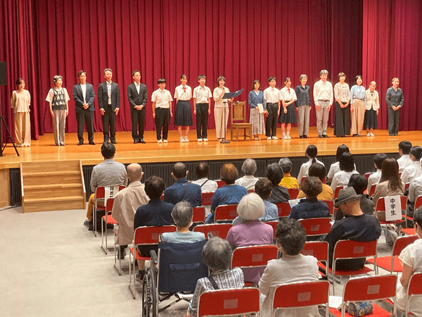 6月に村内のホールで行われた夢風船の朗読会では、戦記や今の世代の平和への思いなどが伝えられた。読み手には初めて参加する30代や中学生たちの姿があり、会場には戦争を知る世代から子どもたちまでおよそ300人が村内外から詰めかけた。