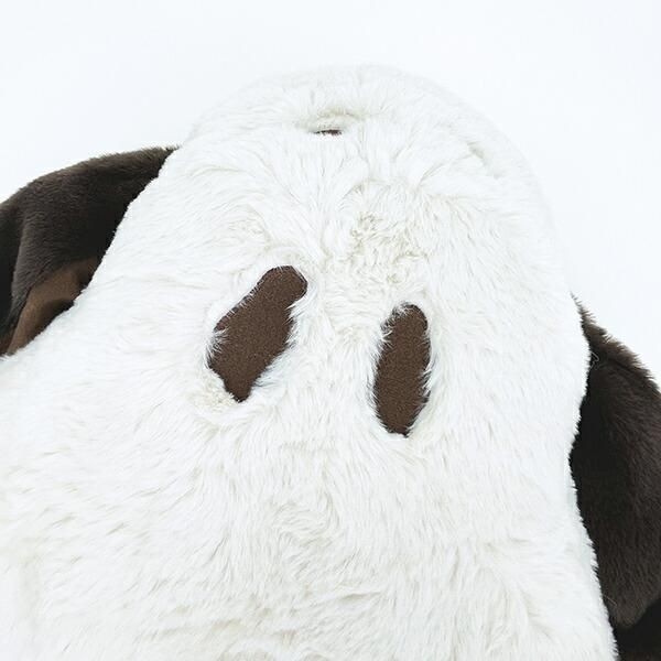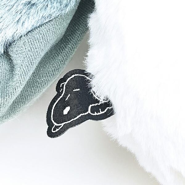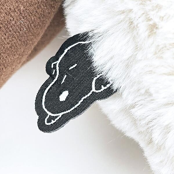 ふわふわの毛並みで最高の触り心地。クッションの横からは、ごろ〜んとしたスヌーピータグが。