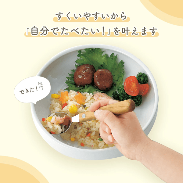 まるくぱーじゅの子ども食器はそんな子どもたちを応援するための「持ちやすさ」や「すくいやすさ」にこだわったデザインを多く取り入れています。
