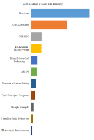 銀焼結ダイ接着機の世界市場には、Boschman、AMX Automatrix、NIKKISO、PINK GmbH Thermosysteme、Zhuhai Silicon Cool Technology、ASMPT、Shenzhen Advanced Joining、Quick Intelligent Equipment、Zhongke Guangzhi、Chenglian Kaida Technologyなどが主要プレーヤーとして存在する。2024年のデータによれば、世界トップ5企業は売上ベースで約59.0%の市場シェアを占めており、競争は依然として寡占的構造である。各社は技術革新、装置のカスタマイズ、グローバル顧客ネットワークの強化を通じて、市場における競争優位を確保している。特に欧州・北米の企業は高度な自動化技術と精密制御に強みを持ち、アジアの新興企業はコスト競争力と顧客ニーズへの柔軟対応で市場浸透を進めている。