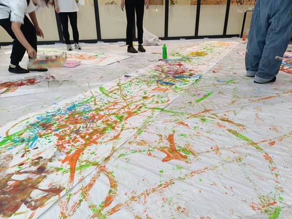 イベントでは、川崎市の重症児放課後等デイサービス「そらとわすくーる」の方々が参加され、様々な道具を用いて楽しみながら自由に描いていました。