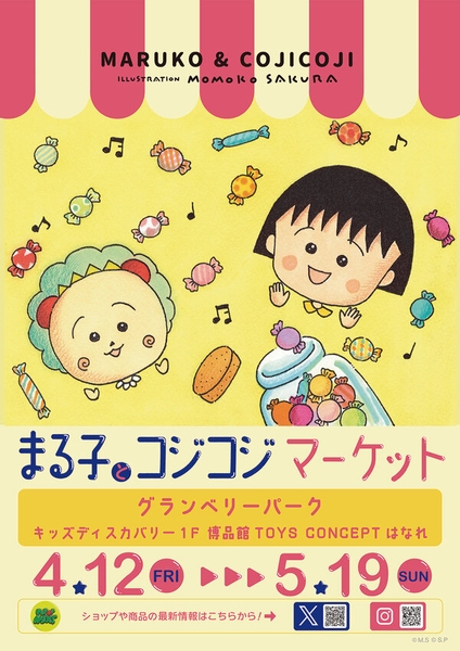 『まる子とコジコジ』の期間限定ショップ「まる子とコジコジマーケット in グランベリーパーク」が、2024年4月12日(金)~2024年5月19日(日)の期間、南町田グランベリーパークで開催いたします。