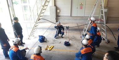 グランデコリゾートと喜多方消防署北塩原村分署で使用している救助用具が異なるため、有事の際により早く、的確に救助するため、お互いの救助用具を使用し、訓練いたします。