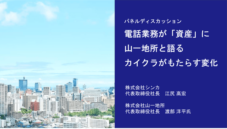 会期中の特別セミナーでは、仙台商圏で3拠点、管理戸数14,600戸を誇る株式会社山一地所(本社:宮城県仙台市、代表取締役社長 渡部洋平、以下「山一地所」)が登壇し、賃貸住宅業界が抱える「情報の属人化」「応対品質のばらつき」「クレーム増加」といった共通課題に対し、電話業務を貴重な資産に変える「カイクラ」の導入効果を紹介しました。