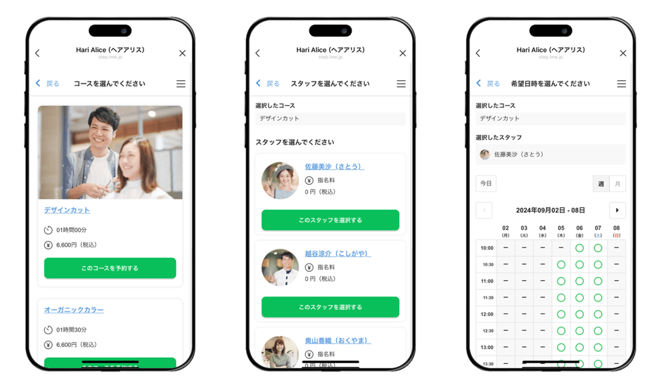 美容室・マッサージ・整体・商談など、お客様との対面サービスに最適な予約管理機能です。