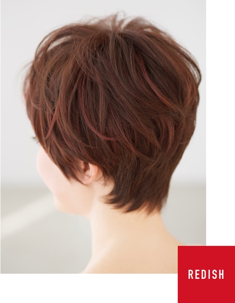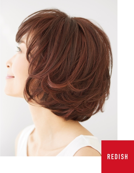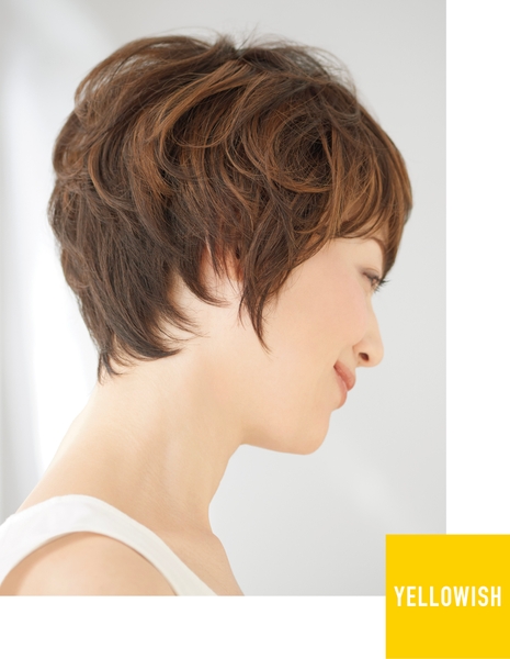 『J.all(ジェイ・オール)』は、「スライシング」という技法を使ってアクセントとなるカラーの毛を地層のように薄く入れ、風や動きによって髪が揺れたとき、カラーがさりげなく見え隠れするデザインにしました。アクセントとなるカラーは、肌なじみのいいイエロー系2タイプ、明るい印象のレッド系、メリハリのホワイト系と、お好みに合わせて選べる計4タイプ。スタイルは人気のショートとボブをご用意しました。