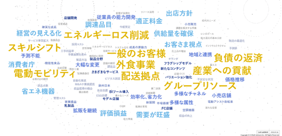 まずは2023年に入り、数社で中期経営計画の公表がありました。これだけを持ってトレンドとは言えませんが、今年もCCReB GATEWAYではこのように、企業のビジネストレンドを“可視”して参ります。1月時点のホットワードが、今年を終えた際にどう変化していくか?この点にも注目頂ければと思います。以下、前年との比較において急激に出現率を伸ばしているホットワードをご紹介していきます。