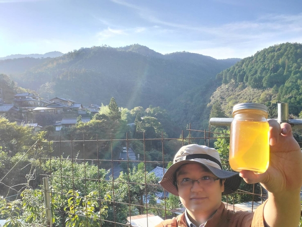 京都市右京区の高雄地区でニホンミツバチを飼っている養蜂家さんで、猟をしたり、柿や柚子などいろんなものを育てたりしているそうです。初対面にも関わらず、山の話や動物の話で盛り上がり、そこからミツバチ、蜂蜜の話をじっくりして、とっても信頼できる方だったので、蜂蜜をいただくことになりました。結構なお歳だと思うのですが、最近はYouTubeで養蜂技術の向上に励んでいると聞いたときには驚きました。紅葉の名所としても知られる高雄の神護寺周辺で採れた蜂蜜。いただけたのはわずか10kgほど。すごく貴重な蜂蜜との出会いに運命を感じました。