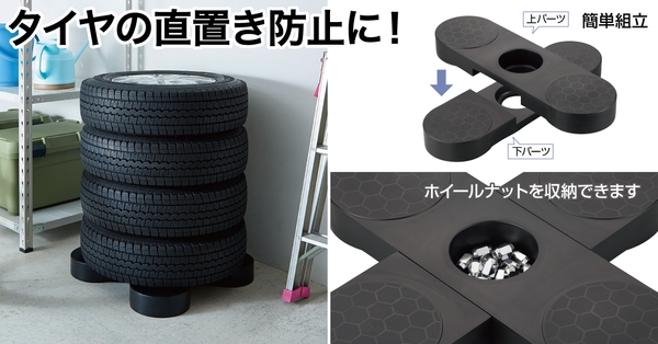タイヤの保管用として、夏用・冬用・スペアタイヤなどの収納に最適です。耐荷重は120kgなので、安心して収納出来ます。