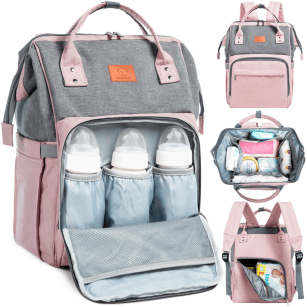 おむつバッグとは、外出時に赤ちゃんのお世話に必要なアイテムをまとめて持ち運ぶための収納バッグである。多くのポケットや仕切りが設けられており、予備のおむつ、ウェットティッシュ、おしゃぶり、哺乳瓶など、短時間の外出中に必要となるさまざまな用品を整理して収納できる。おむつバッグを活用することで、外出中に何を忘れたかと心配することなく、赤ちゃんの世話に必要なものをすぐ取り出せ、快適かつ効率的にお世話を行うことが可能となる。軽量かつ持ち運びやすい設計のものが多く、保護者にとって便利で実用的な育児用品である。