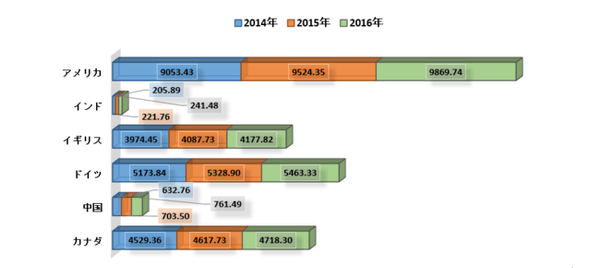 一人当たりの医療費、PPP(米ドル)– 2014-2016年 ソース:WHO
