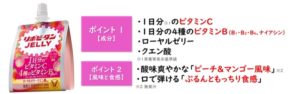 「リポビタンゼリーVC」は、2025年4月8日に登場します。このゼリーには、女性が求めている成分であるビタミンCとビタミンB(B1・B2・B6、ナイアシン)がたっぷり含まれています。食感にもとことんこだわっており、ぷるぷるとした優しい口当たりを実現しました。