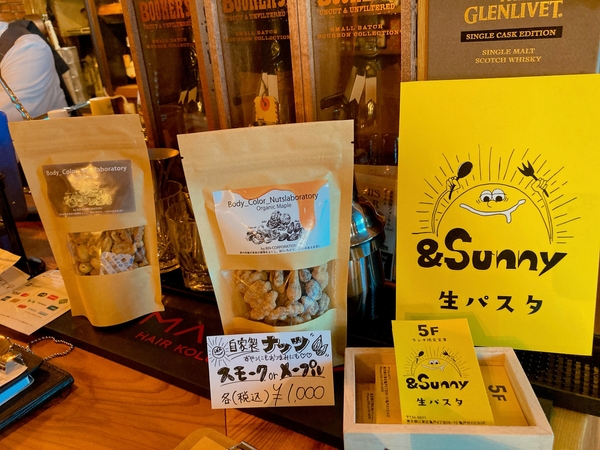 また、セットにはナッツがついていて、このナッツも店主の伊藤さんが製造・販売しています。ナッツはおやつやおつまみとしてお店でも購入ができます。味はスモークとメープルの2種類があります。おやつとしてはメープル味、お酒などのおつまみとしてならスモーク味がおすすめです。