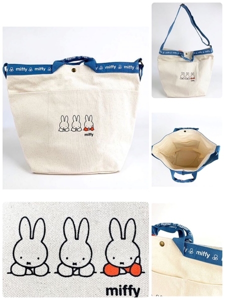肩が疲れた時はトートバックとして♪持ち手が細くなっているから持ちやすい~♡ミッフィのロゴとチューリップのデザインも可愛いですよね。