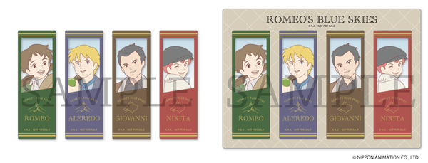 「ロミオの青い空」の関連商品を1,500円(税込)以上お買い上げごとに、先着で「クリアしおり」(全4種)をランダムで1枚プレゼントいたします。デザインは、ロミオ・アルフレド・ジョバンニ・ニキータがデザインされた全4種類です。