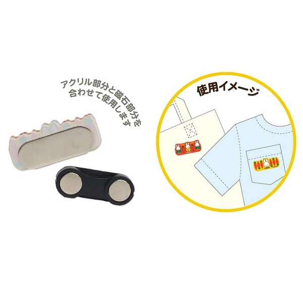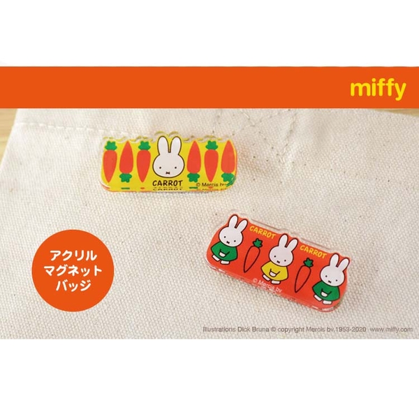 バッジだけど"穴を開けずに磁石でつけられる"すぐれもの☆ ミッフィー アクリルマグネットバッジ CARROTが登場!