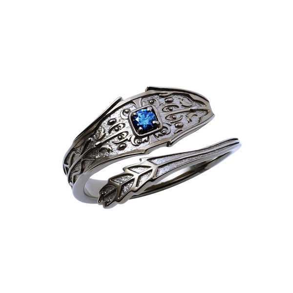 若山の指環(刃)は上品なブラックコーティングを施したナイフエッジの型に、オーバルカットのイメージカラーストーンを配しました。存在感がひき立つデザインです。