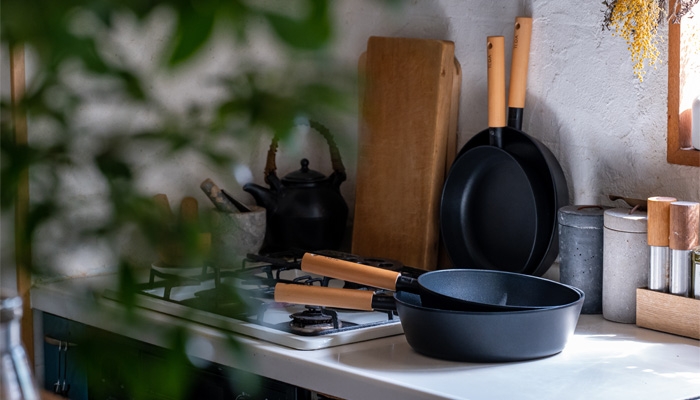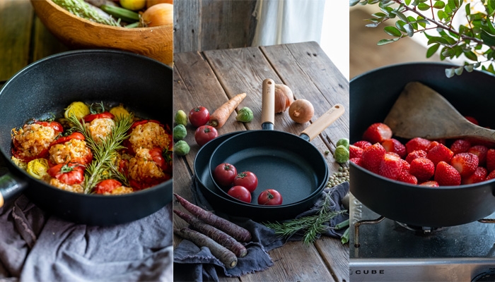 日々の料理において、軽くて扱いやすいストレスフリーなフライパンとマルチパンです。マルチパンは、わずか580gでとても扱いやすくなっています。