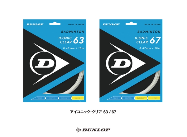 多くのプレーヤーに好まれる心地よい打球感を目指し、ダンロップの「象徴的な」ストリングにしていきたいということ、硬式テニス用のナイロンストリングにも「ICONIC」という名前を採用していることから「ICONIC」と名付けました。また、“CLEARな音を目指して”という思いから「ICONIC CLEAR」とし、後ろの数字については、ストリングの太さ(63=0.63mm、67=0.67mm)をわかりやすく表現しています。
