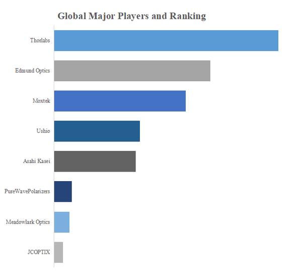 QYResearchのトップ企業研究センターによると、ワイヤーグリッド偏光子の世界的な主要製造業者には、Thorlabs、Edmund Optics、Moxtek、Ushio、Asahi Kaseiなどが含まれている。2022年、世界のトップ3企業は売上の観点から約64.0%の市場シェアを持っていた。