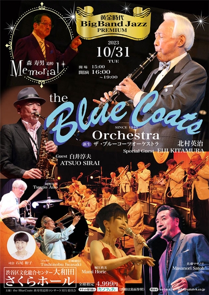 BlueCoats森寿男追悼コンサート実行委員会主催、『黄金時代 Big Band Jazz PREMIUM』が2023年10月31日 (火)に渋谷区文化総合センター 大和田 さくらホール(東京都渋谷区桜丘町23番21号)にて開催されます。