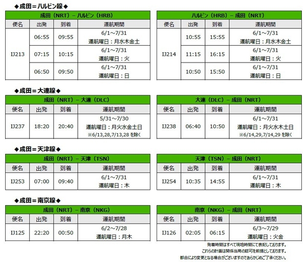 JALグループのLCCであるスプリング・ジャパン株式会社(以下:スプリング・ジャパン)は、成田=ハルビン線、大連線、天津線、および南京線の運航を以下のとおり決定し、本日15時より販売を開始します。