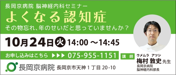 長岡京病院、10月24日(火)にセミナー第3弾を開催 脳神経内科セミナー「よくなる認知症」 ~その物忘れ、年のせいだと思っていませんか?~