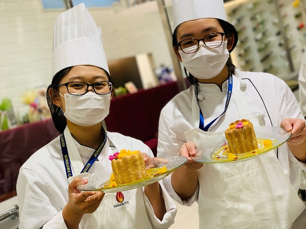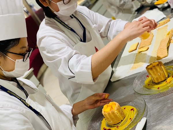 ブライダルではデセールをきれいに仕上げるセンスなどが必要になってくるので1年生の初めから学んでいきます。